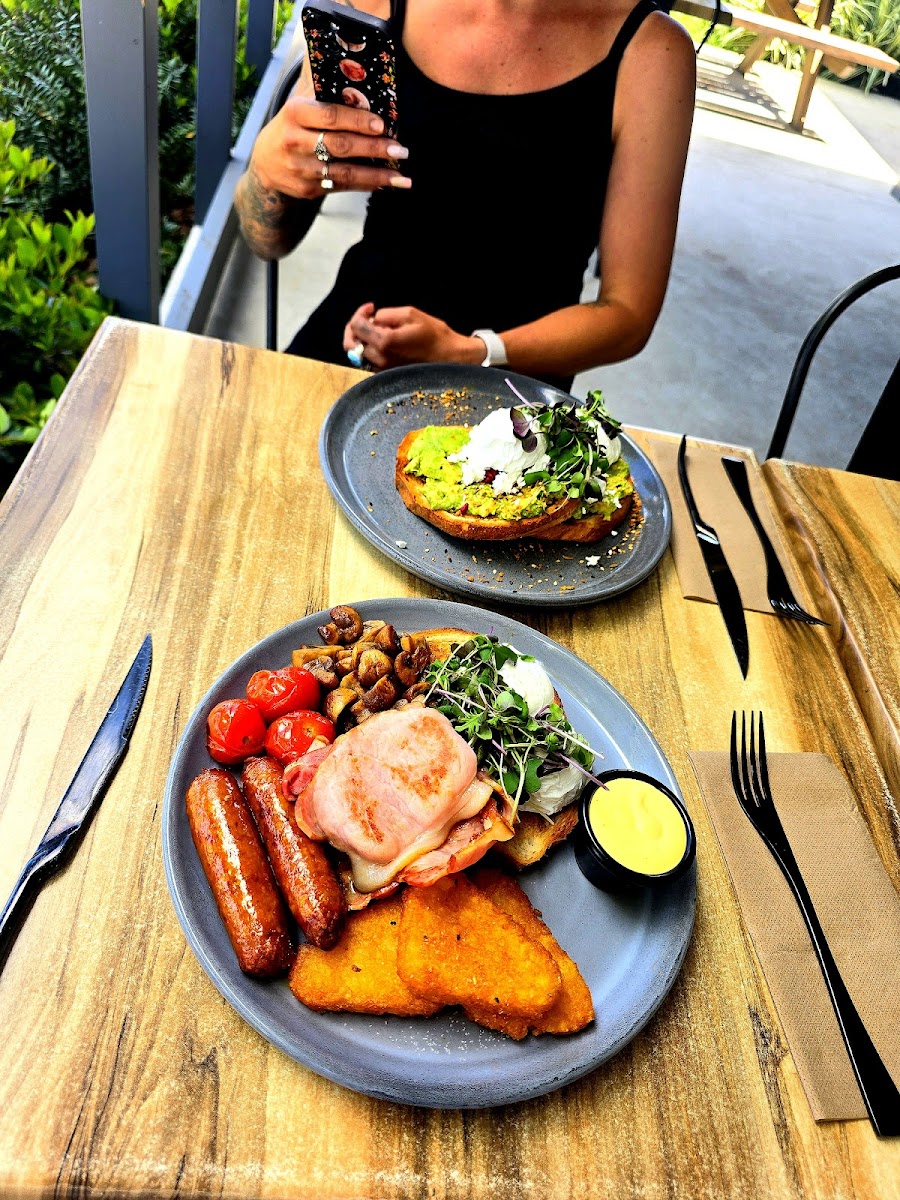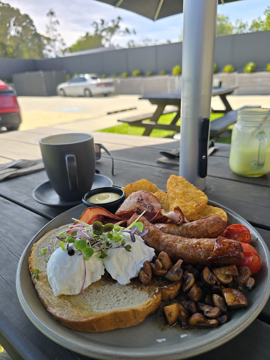 Lovely local Cafe! Stopped in for coffee and a quick bite to eat with a group of 9 on a Sunday Morning. Staff were accommodating and quick to make us welcome. Lovely outdoor seating area in the sun at the back. Coffees were smooth and delicious and the food was tasty and presented so beautifully. Indoor and outdoor dining options.