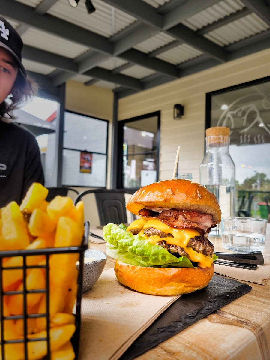 A perfect little find on our way to Lakes entrance. Wonderful service and cure Deco. A large outdoor area too. Excellent brunch / lunch food. Loved the Salmon eggs Benedict. So fresh, home made sauce and nice toppings. Great price too! My mate's burger was juicy and the chips crunchy!